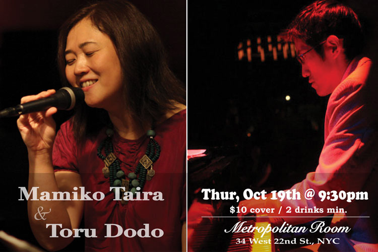 Taira is an internationally-awarded jazz vocalist (grand prize at the Asakusa Jazz Festival Competition, invited participant at the Manly Jazz Festival in 1994 and 1996, finalist at the Third Annual Jazzconnect Jazz Vocal Competition) who toured with the James McBride Group and has been a fixture on the New York City jazz scene. Besides being a pianist, Oe is a well-known lyricist, composer, arranger, actor and television host in Japan. He just finished up his spring tour with Morning Musuko, a 17-piece big band specializing in Japanese popular music, and continues to play in prominent New York City jazz venues.